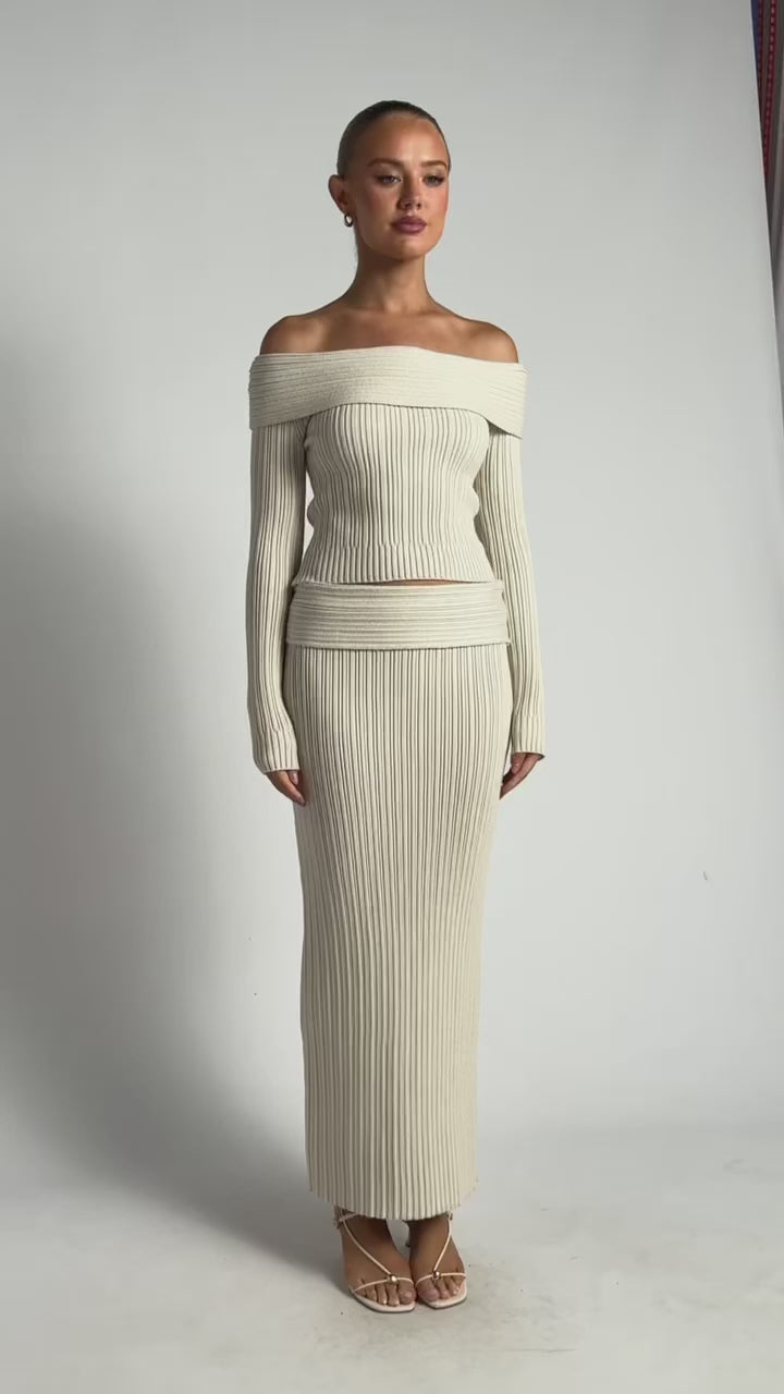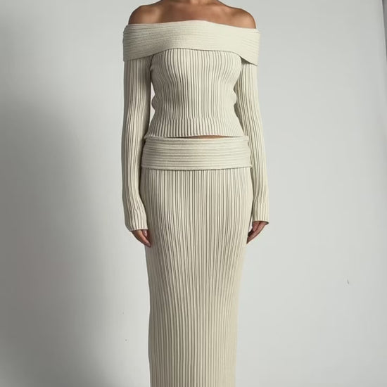 Luxe off shoulder thick knit long sleeve top / maxi skirt